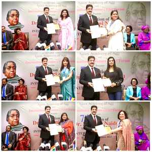 Noida: In a remarkable celebration of the achievements and contributions of women, one hundred exceptional working women from India and abroad were recognized and celebrated with the prestigious 7th Dr. Sarojini Naidu International Awards. The gala event took place at Marwah Studios in Film City, Noida, under the auspices of Dr. Sandeep Marwah, Chair for the Dr. Sarojini Naidu International Awards.