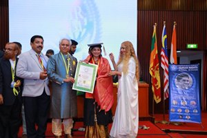 After 5 days Successful World Congress / Conference of Scientists  of several Countries , in BMICH ,Colombo , Eminent Scientist His Eminence Prof. Dr. MADHU KRISHAN, The Chairman & Chief Rector of The American University University USA ( AUGP USA ) & United Nation University For Global Peace USA ( UNUGP )  conferred Doctorate Degree ( Honoris Causa) & Award of Human Excellence to Dr. Payal Neha Panigrahi in another Peace Summit & Human Rights Seminar  in Colombo In Govt. Auditorium BMICH on 28 th November 2023.