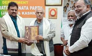 Sh Ashok Koul, General  Secretary(Organisation) BJP was facilitated by prof Dr Kulbhushan Mohtra, Ambassador of American University USA ( J&K Chapter) and Dr Romesh Khajuria, Chairman, Wool & Woollen Export Promotion Council(WWEPC), Ministry of Textiles Govt of India on behalf of world renowned scientist His Eminence Dr Madhu Krishan Chairman & Reactor of United Nations University for Global Peace(UNUGP) & American University for Global Peace(AUGP) during a function in Jammu,